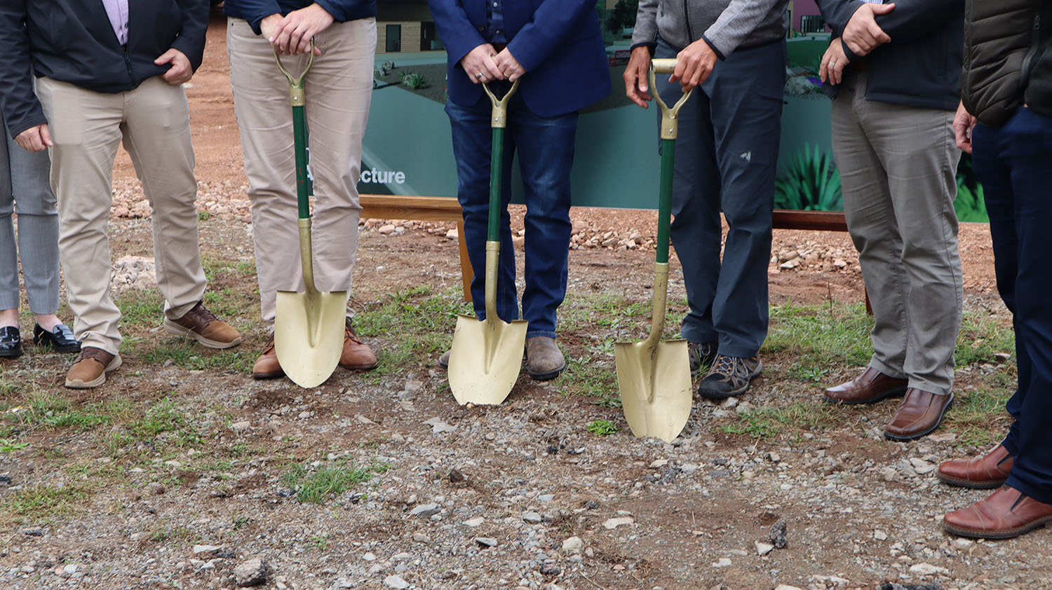 Golden shovels at the funding announcement for the Oxford Community Centre