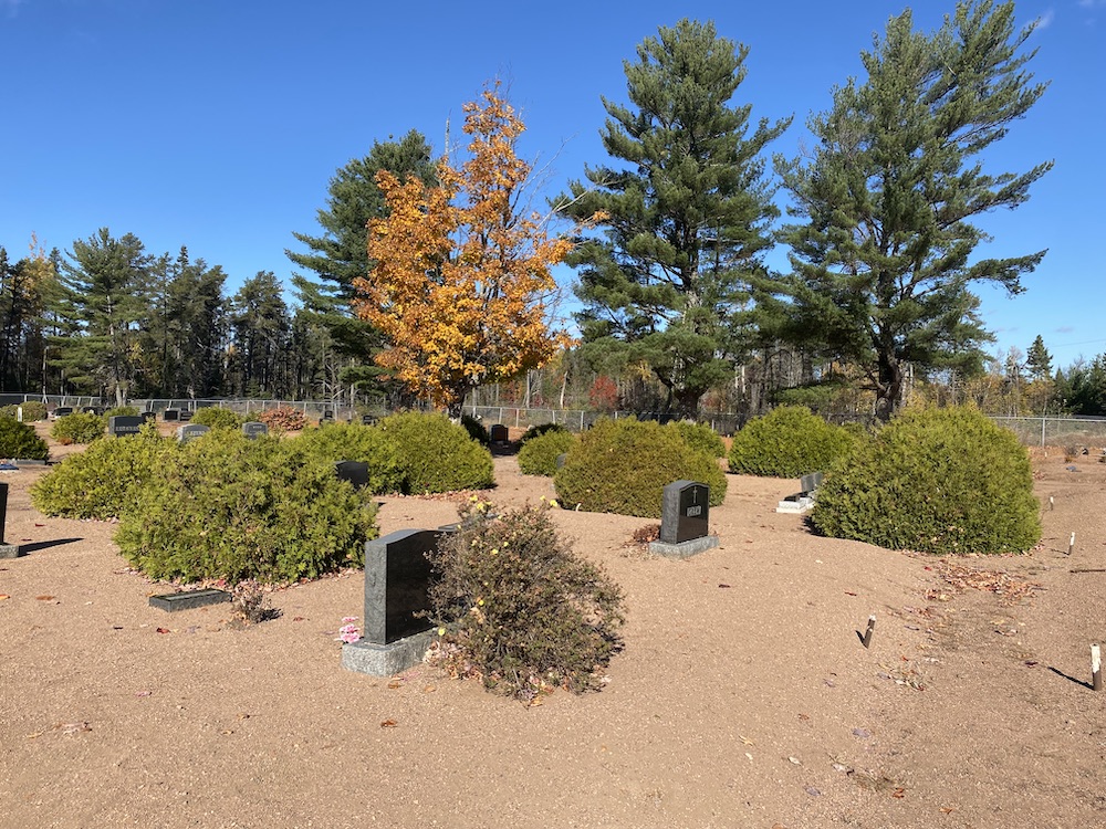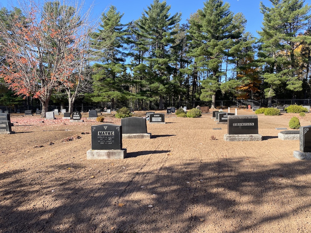There are many spruce shrubberies, allowed under Pine Grove’s bylaws, and that’s one of the current challenges in keeping the cemetery presentable.