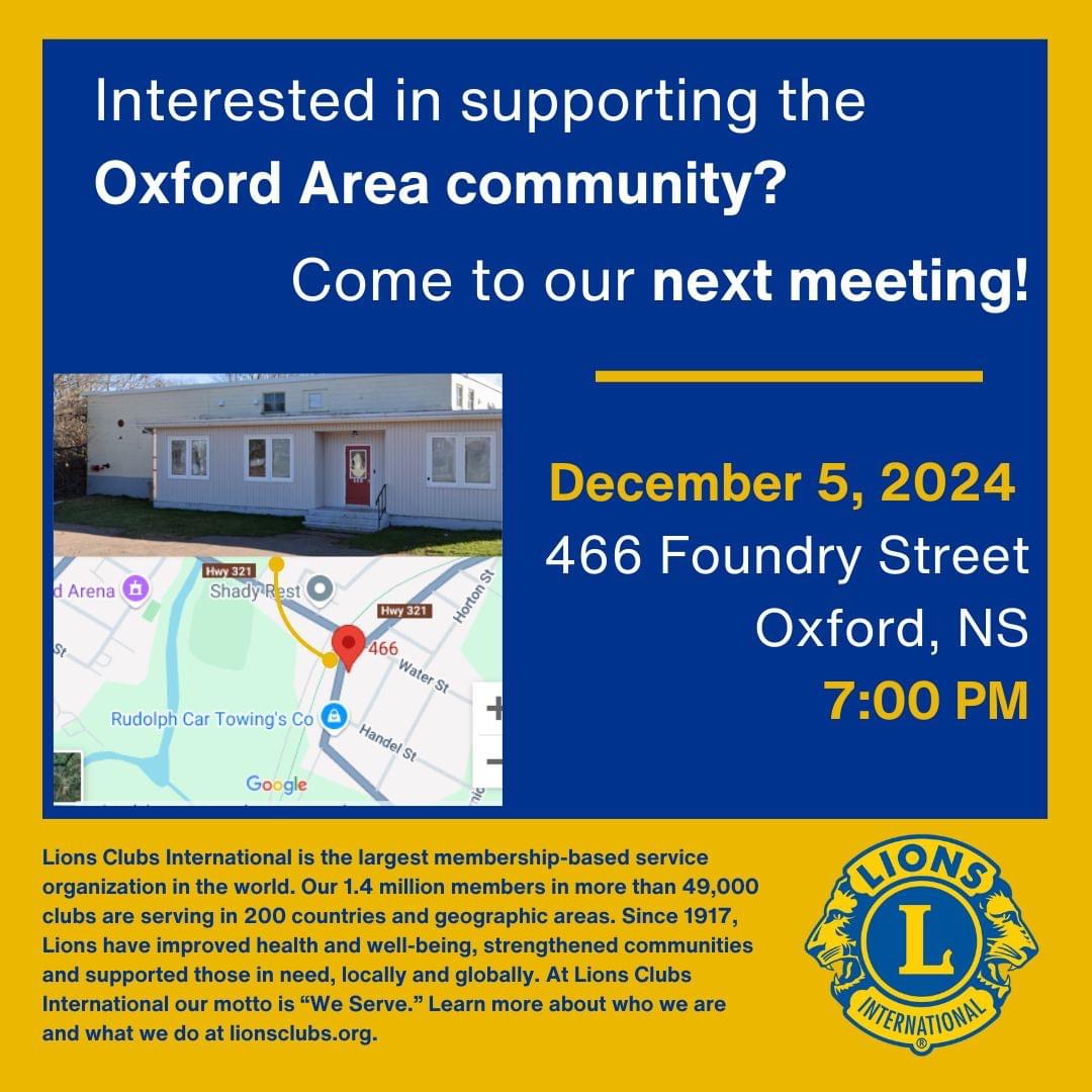 Interested in supporting the Oxford Area community? Come to our next meeting! Lions Clubs International is the largest membership-based service organization in the world. Our 1.4 million members in more than 49,000 clubs are serving in 200 countries and geographic areas. Since 1917, Lions have improved health and well-being, strengthened communities and supported those in (...)