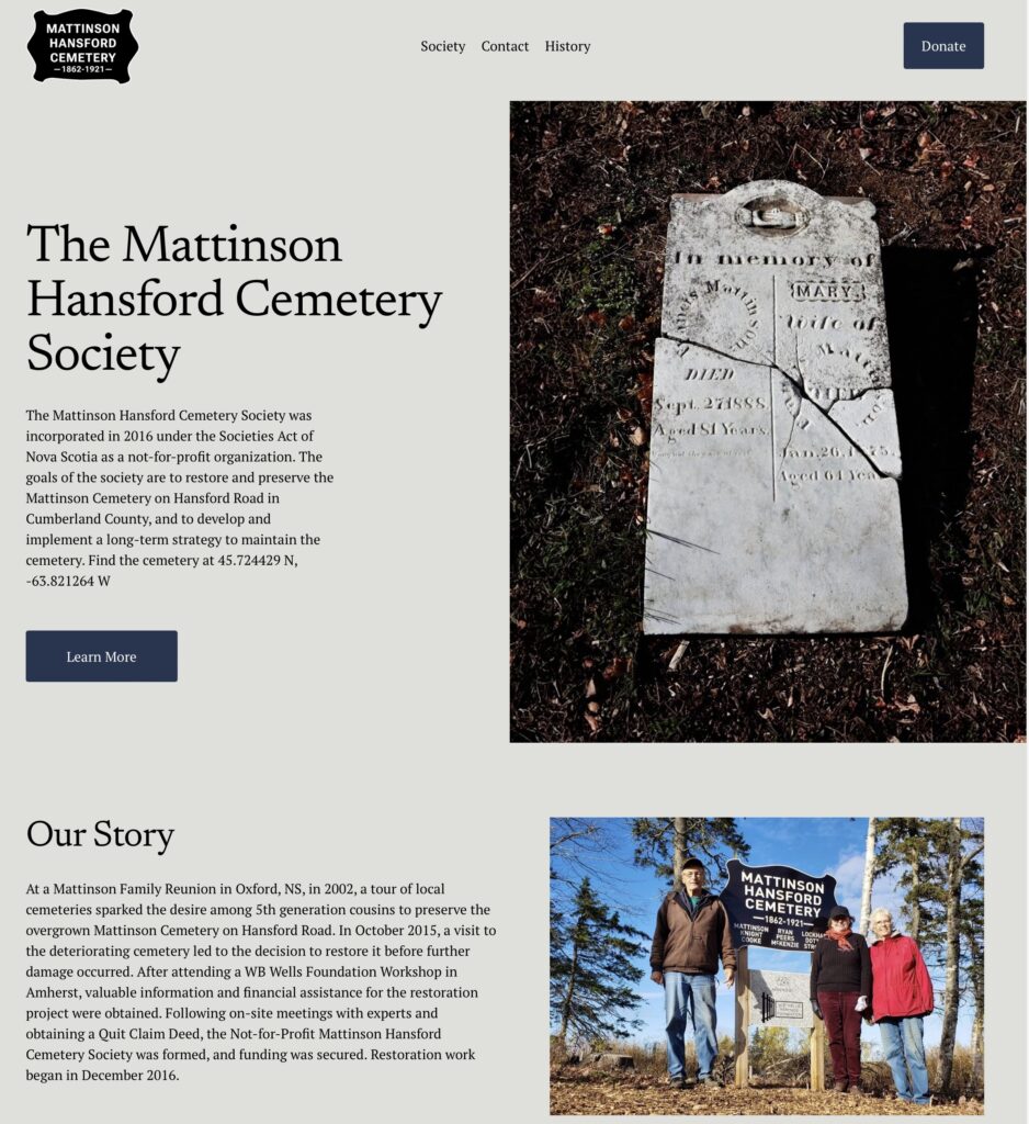 Society President Jill Mattinson says the group received strong support from the community, highlighting the late Eleanor Crowley, and Linda Cloney โ members of the Oxford Historical Society โ for their contributions. Mattinson says that during the society’s many working meetings in Oxford, the Parkview Restaurant was “our second home.” In a January, 2021 article by the CBC, Mattinson reflected on the emotional connection she has with this cemetery: