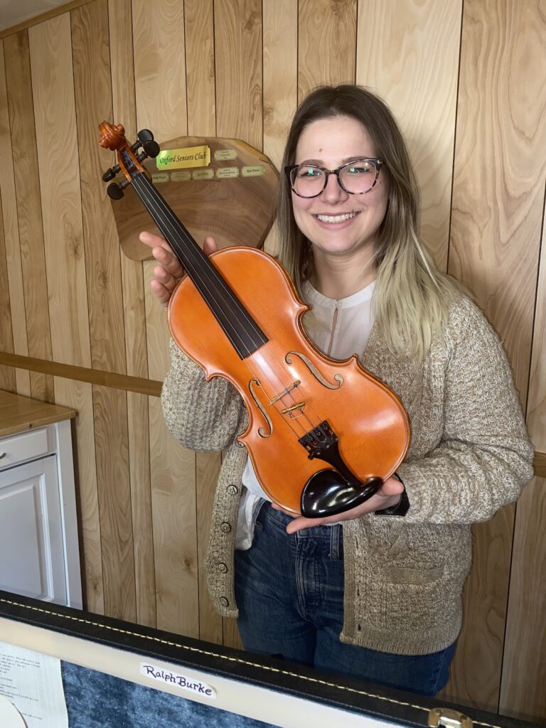 MacCleave’s prowess as a fiddle-maker gained him some renown beyond his adoptive Oxford home. His instruments are seen as among the best produced in the region. One of the fiddles he crafted in the shed behind his Henderson Street home was inherited by the husband of a folklore researcher. The Oxford Historical Society welcomed Dr. Ema Kibirkstis to town on Friday, 18 April 2025, as she digs into the life & times of Jim MacCleave, who served as Vice-Principal at ORHS, Town Councillor, and wore many other hats in our community.